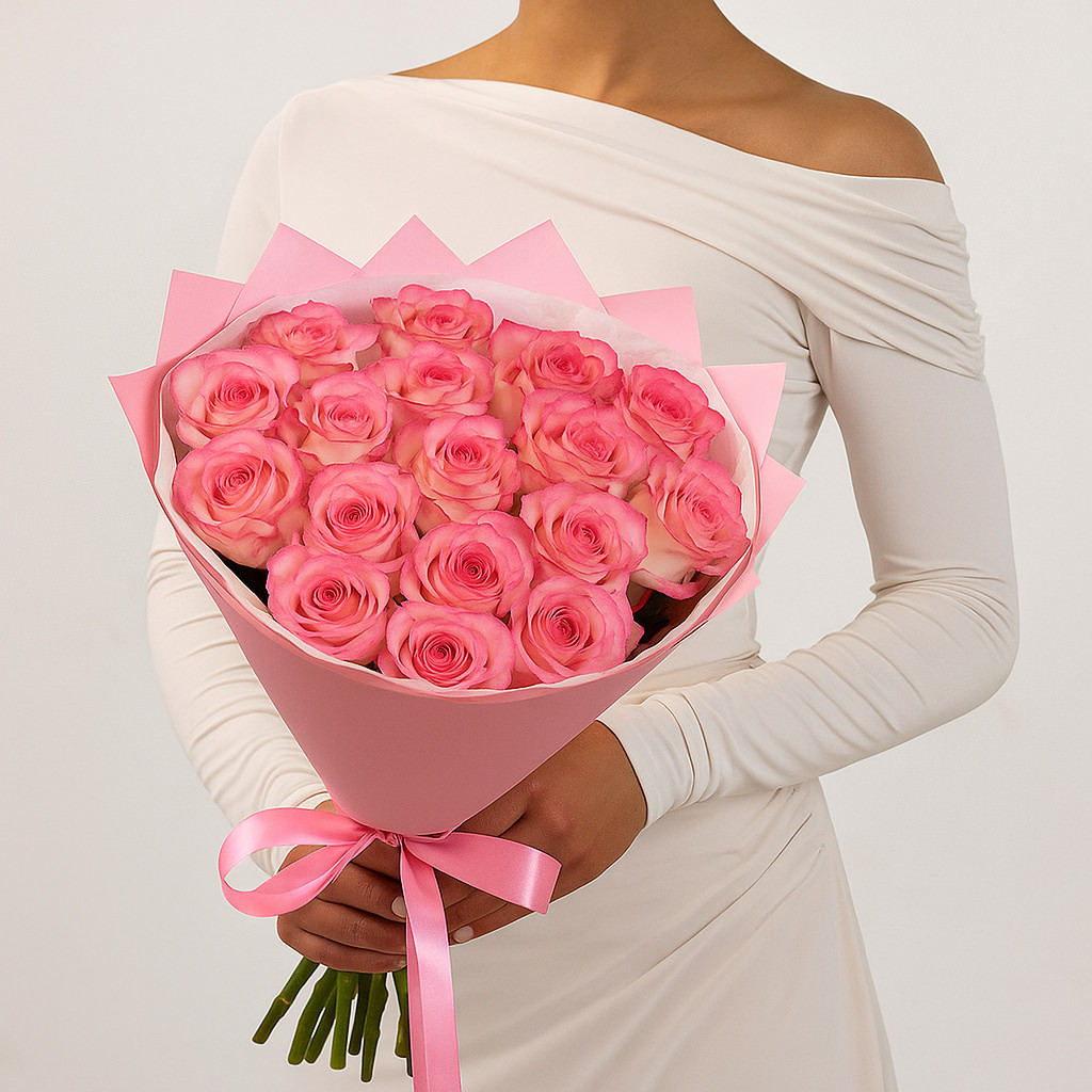 Нежный букет, созданный для самых трогательных моментов. Сочетание розовых роз с лёгкой упаковкой и атласной лентой делает композицию изысканным подарком, который подчеркнёт искренность ваших чувств.