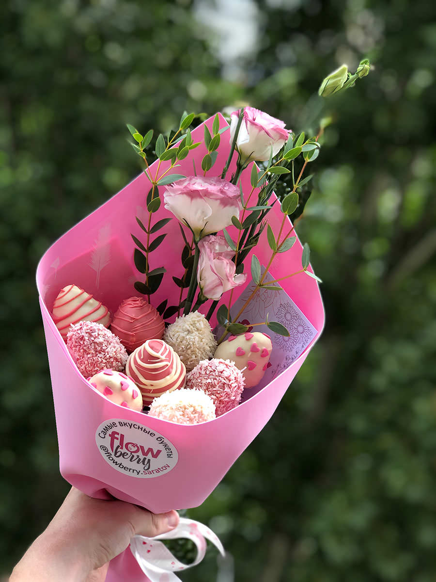 Сестренка в восторге! ???...Оформляла заказ клубничного букета на сайте, мне профессионально помогли с выбором букета для сестренки!