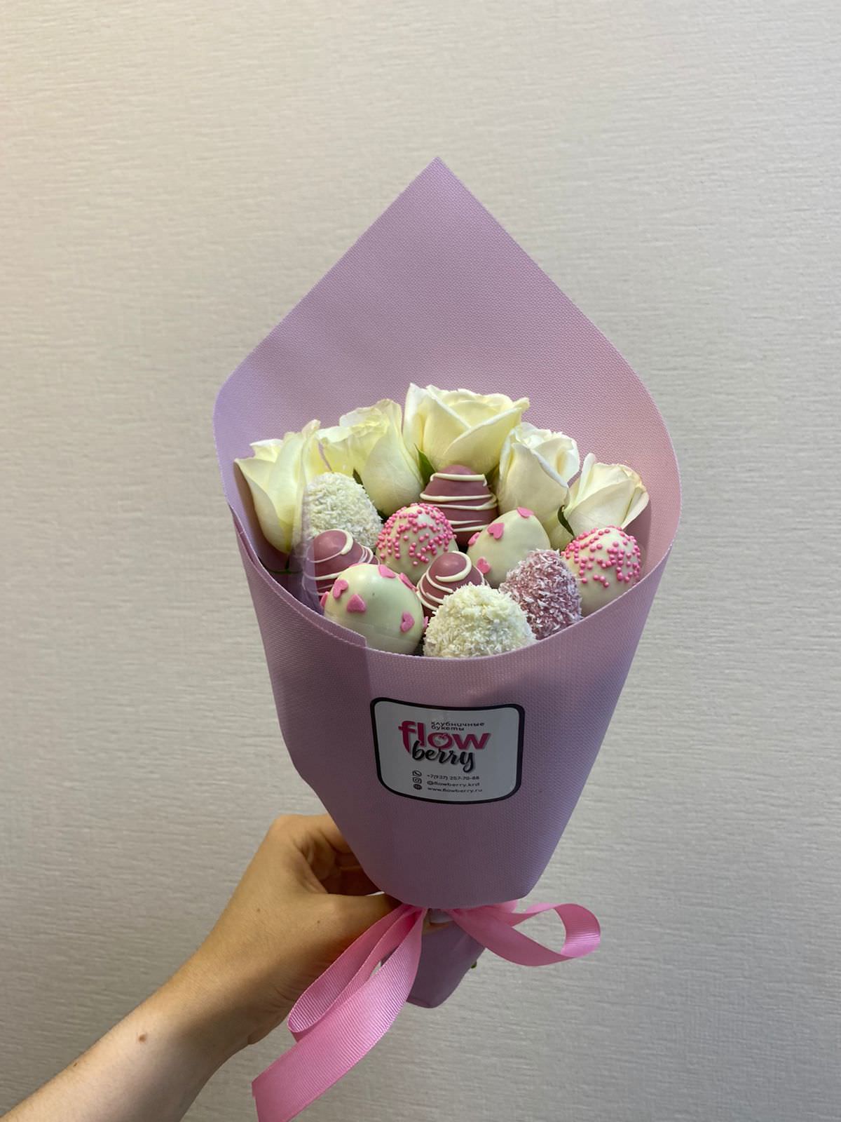 Сестренка в восторге! ???...Оформляла заказ клубничного букета на сайте, мне профессионально помогли с выбором букета для сестренки!